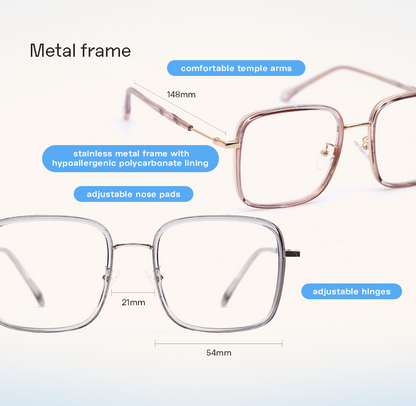 - Hypoallergenic polycarbonate temple tips for comfort